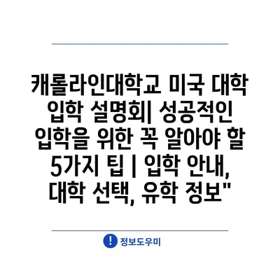 캐롤라인대학교 미국 대학 입학 설명회| 성공적인 입학을 위한 꼭 알아야 할 5가지 팁 | 입학 안내, 대학 선택, 유학 정보”