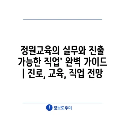 정원교육의 실무와 진출 가능한 직업’ 완벽 가이드 | 진로, 교육, 직업 전망
