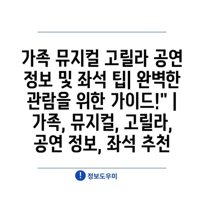 가족 뮤지컬 고릴라 공연 정보 및 좌석 팁| 완벽한 관람을 위한 가이드!” | 가족, 뮤지컬, 고릴라, 공연 정보, 좌석 추천