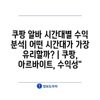 쿠팡 알바 시간대별 수익 분석| 어떤 시간대가 가장 유리할까? | 쿠팡, 아르바이트, 수익성”