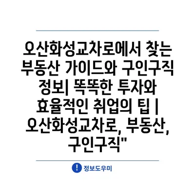 오산화성교차로에서 찾는 부동산 가이드와 구인구직 정보| 똑똑한 투자와 효율적인 취업의 팁 | 오산화성교차로, 부동산, 구인구직”