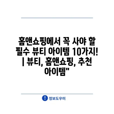 홈앤쇼핑에서 꼭 사야 할 필수 뷰티 아이템 10가지! | 뷰티, 홈앤쇼핑, 추천 아이템”